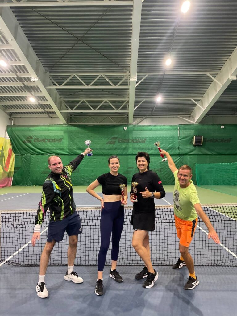 Микст challenger-tour 20 сентября получился динамичным и запоминающимся 💥 было много новых участников, которые уже на своем первом турнире TennisPeople громко заявили о себе. Среди них и чемпионы – Артем Тарасов и Дария Макарова! Непростые соперники в группе не остановили их – счет 6:3 в матче против Романа Керна и Марии Никитиной, и 6:4 с Артемом Деманиным и Светланой Лапшиной💪 В полуфинале пришлось постараться, чтобы выиграть у Наташи Сакадиной и Игоря Сосина, и конечно же сделать последний рывок в финале! Там ждут непобедимые Денис Решетников и Юлия Нагина, которые хоть и встали в пару впервые, сумели как нельзя лучше скомбинировать свои разные стили игры в успешную стратегию! После множества затяжных розыгрышей и бесконечного больше-меньше победа остается за Артемом и Дашей – 6:4🏆🏆
