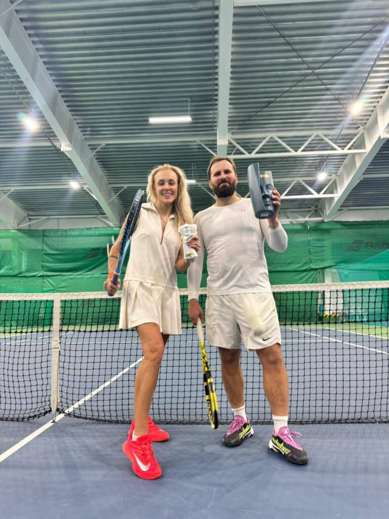Дебютант Сергей Ефимов, как позже выяснилось, он оказался моим земляком, в паре с очаровательной Леной Зайцевой прошли огонь, воду на групповой стадии и медные трубы в дополнительном турнире. Да. В группе у ребят не пошло, зато в Tour выдержали два боевых матча против Наримана Сукояна/ Даши Синягиной 6:4, Лены Полковниковой и еще одного дебютанта турнира Алексея Потапова 6:4.