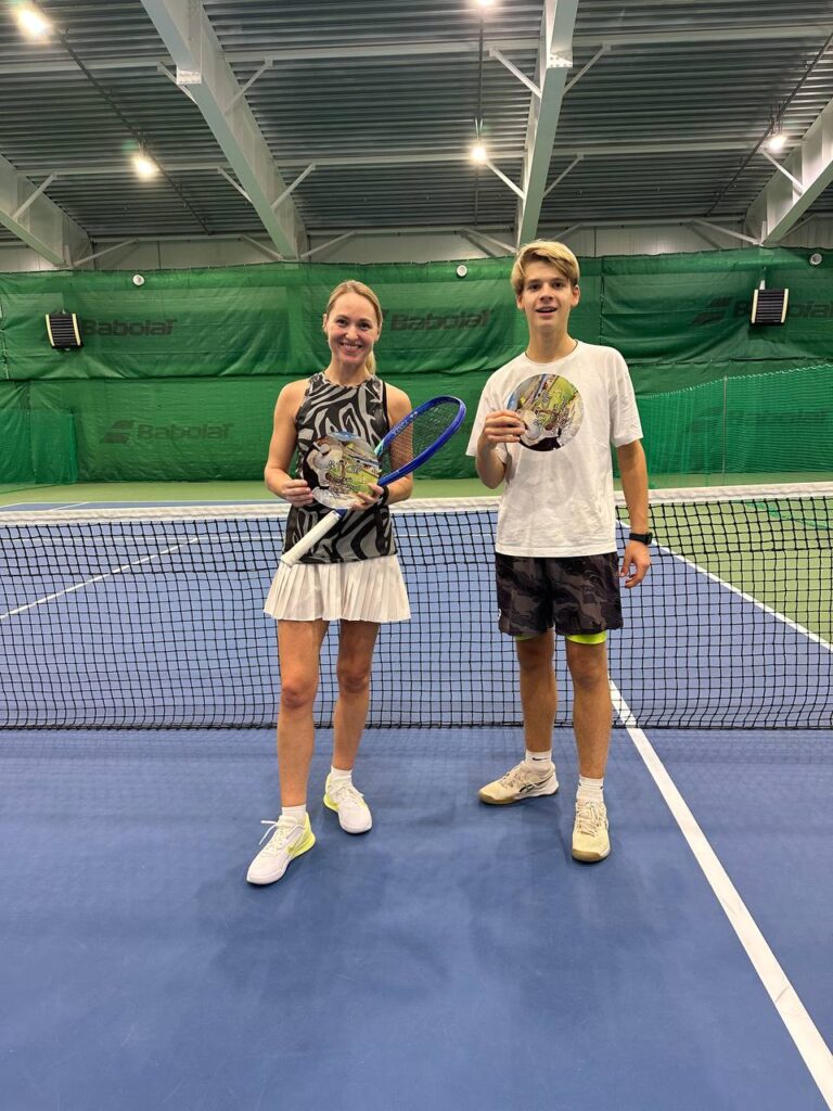 Этот дуэт уже набрал такую парную совместимость, что с одного взгляда друг на друга, они рисуют новые линии на корте, которые превращают в победные феерические краски своей новой турнирной истории. В этот день Юра и Алина не проиграли ни одного матча и уверенной победой завершили финальный матч против Моисеевых Сергея и Алины.