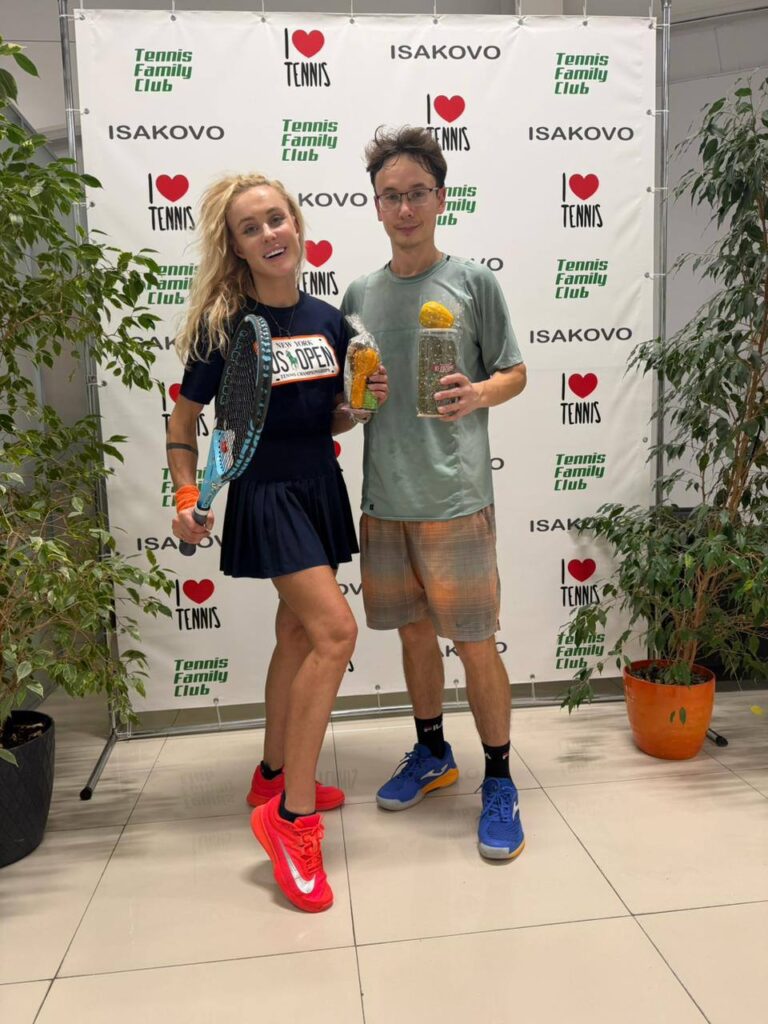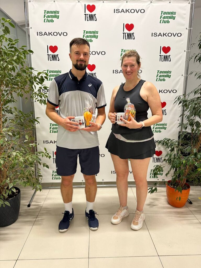 А соперники были очень непростые и каждый матч получился шедевром теннисного искусства. Маша и Дима выигрывают красивейший матч в четвертьфинале против Шона Поллока и Ники Суриковой 6:4, в полуфинале мощный и жесткий матч против Чарушина Дмитрия и Демир Марии 6:4. А в финале поединок сложился поспокойнее, хотя их оппоненты Александр Раценко и Екатерина Перекатова так здорово шли по турниру, что многие делали ставку на их победу. Палей и Пушкин превращают в этот день сказку в реальность и со счетом 6:3 становятся Чемпионами КУБКА ТЫКВЫ.