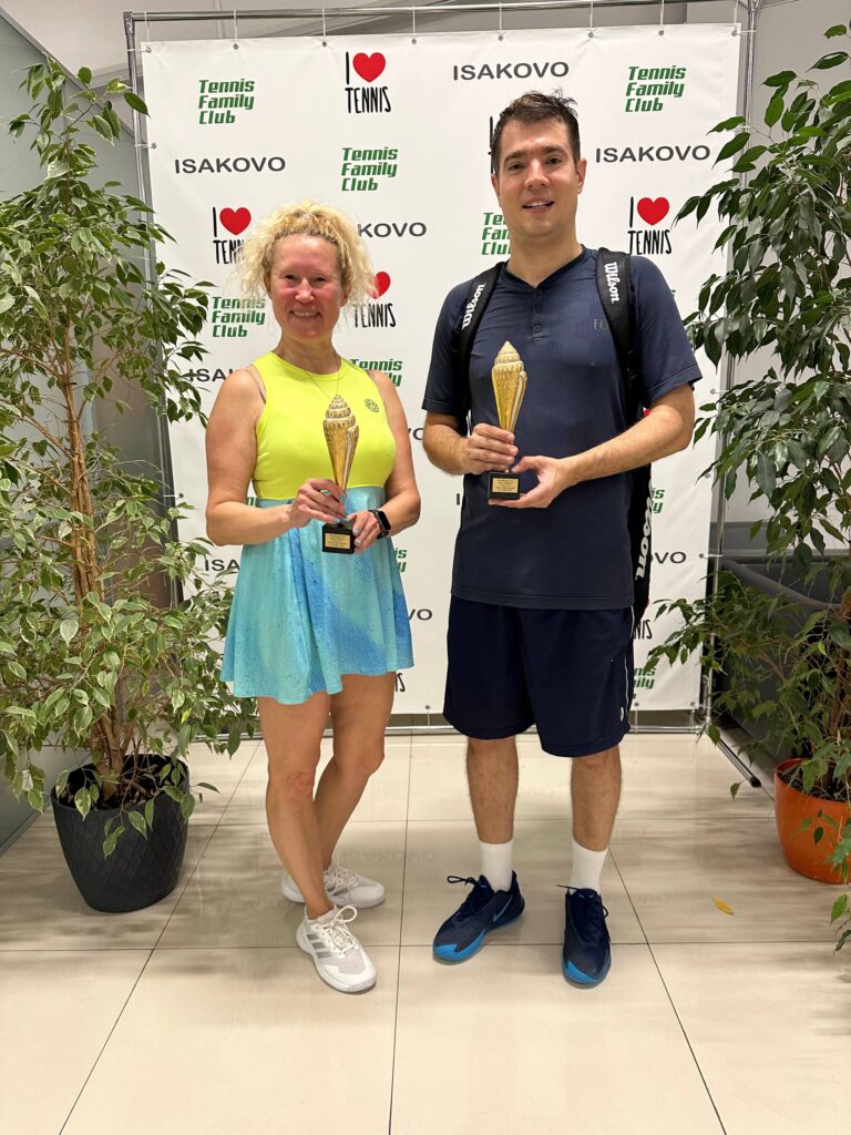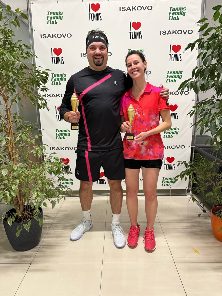 Клим Полев и Эллина Корникова разогрелись на этапе группы и расслабленно начали свое победное шествие в tour’e. На драйве они обыграли Кузнецова Ивана и Белоногую Дарью, затем боролись с Шабаловым Иваном и Леной Миро и наконец в финальном затяжном матче одержали верх над своими главными соперниками дня – Эрнстом Плескачевым и Миланой Соловьевой 💪 Проигрывая 4:5, Клим и Эллина воспользовались своим секретным оружием и перевели стрелки в свою пользу – 7:5🥂 Бесконечные качели, больше-меньше, подачи навылет, очень активная игра, в которой бегали абсолютно все участники👍