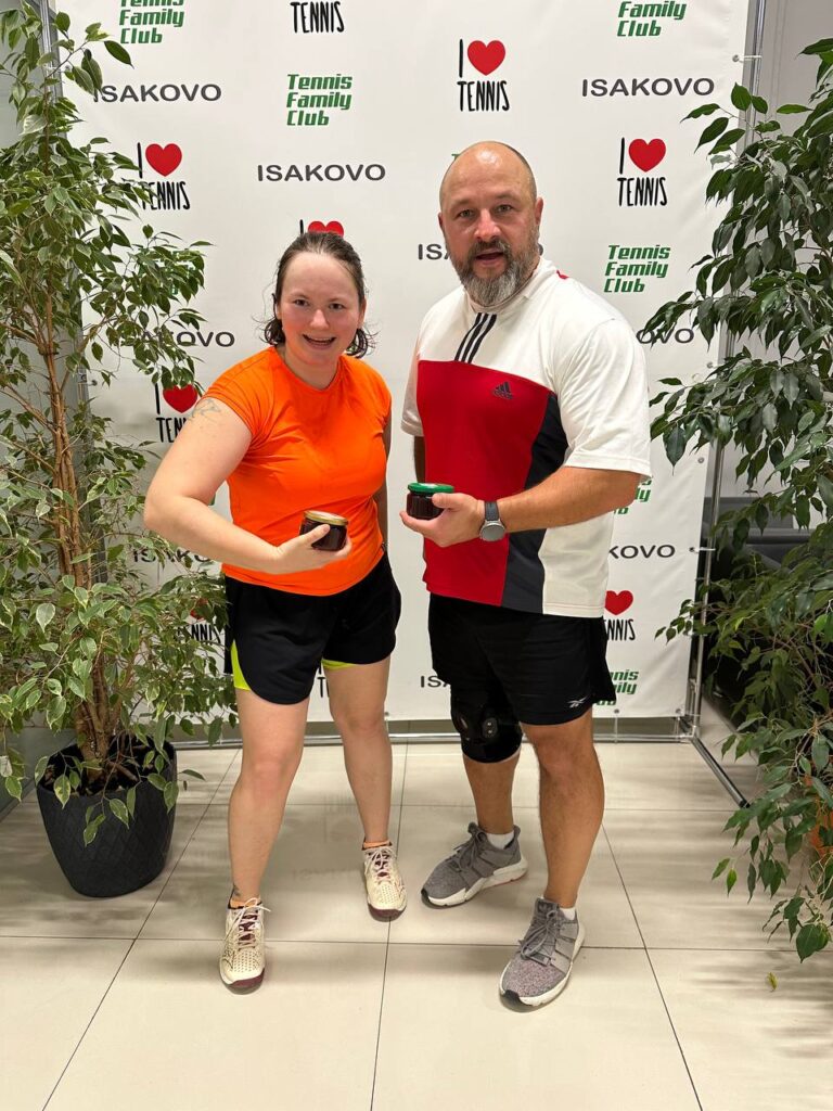 19 ноября в открытой категории разыгрывались легендарные баночки от моей мамочки! И есть участники, которые приезжают только за ними. Вот, например, Владимир Слесарев – фанат абрикосового варенья и его победы в этой категории нацелены только на эту вкусноту. К сожалению, в этот день абрикосового варенья не было на кону, но смородиновое также манило Володю. В паре с Юлей Царевой были продемонстрированы отличные матчи и даже те проигрыши, которые случились, были в равной борьбе. В итоге, Владимир с Юлей наработали на бронзу в виде черной смородины и кабачковой икры.