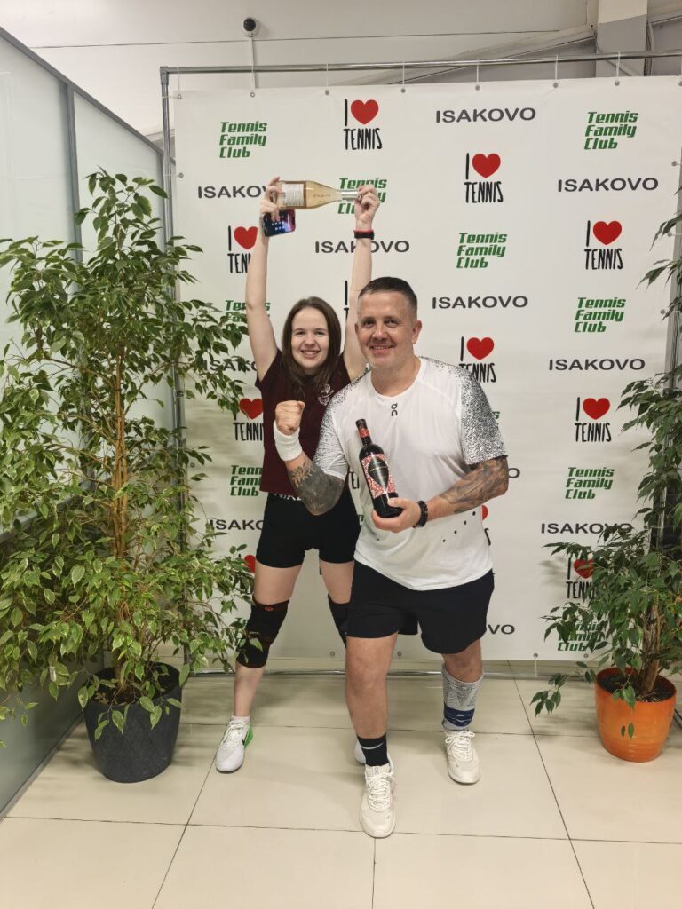 Эта пара всегда на лидирующих позициях. В этот день у Вани и Иры мяч летел точно в цель. Невероятная замотивированность и боевой настрой приводят к 4 из 5 выигранных матчах и только в решающем матче не смогли дожать будущих чемпионов Дениса и Юлю.