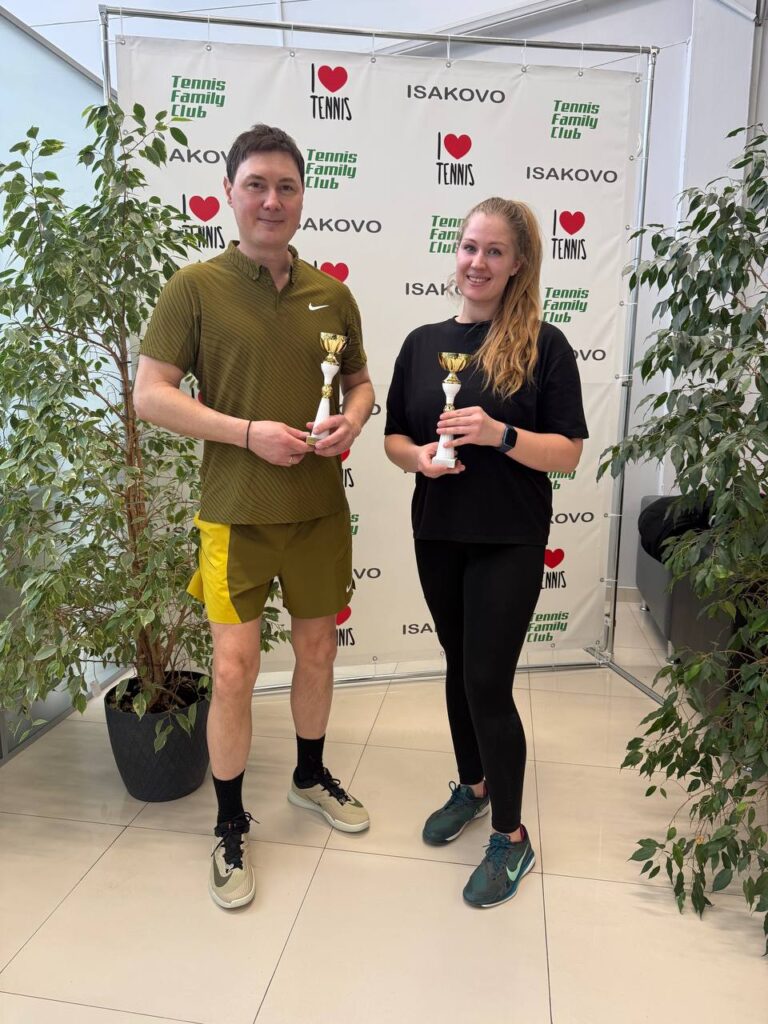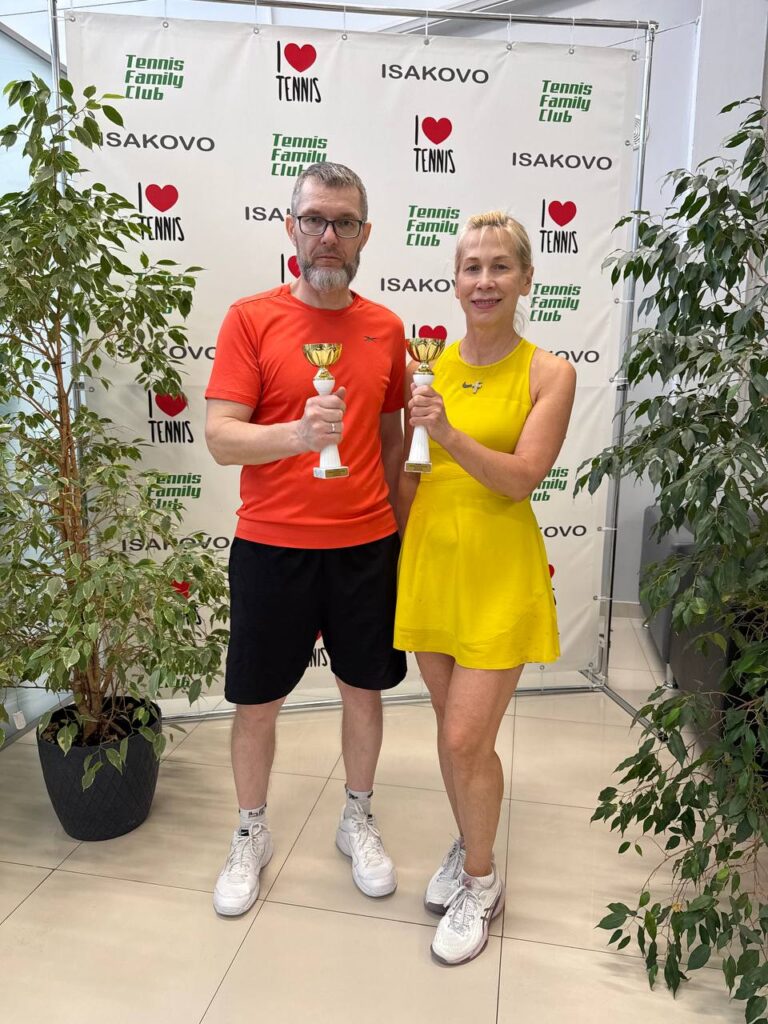 На верхушку пьедестала вихрем взбирается семейный союз Сергея и Натальи Кондратьевых. Чемпионы показали слаженную игру и выдержку, что позволило им обойти сильных соперников. 5 победных матчей и они завоевывают главный трофей турнира 🔥🏆